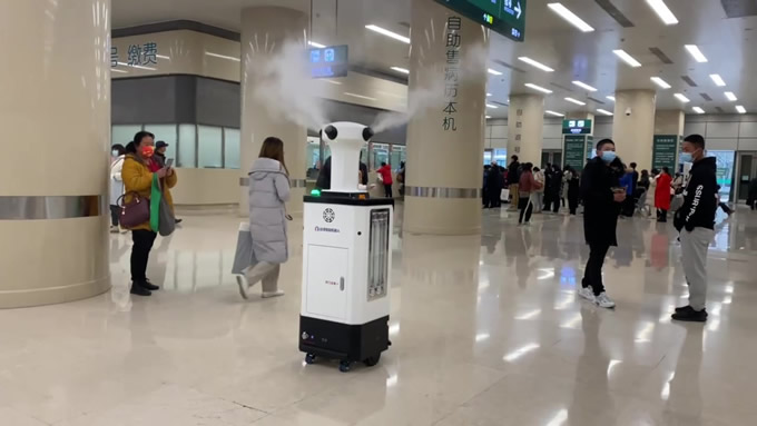 消毒機器人什么場合作用大,大型公共場所使用消毒機器人進行消毒