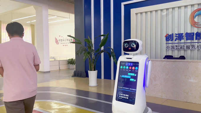 創澤智能消毒機器人和智能大屏機器人等多款機器人亮相蘭洽會,彰顯了創澤AI技術實力與場景深耕能力