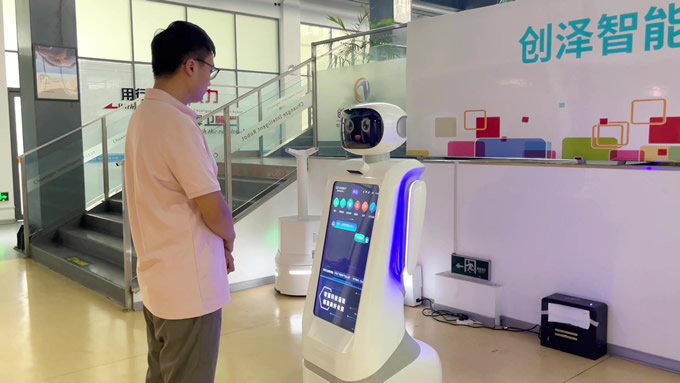 創(chuàng)澤智能消毒機器人和智能大屏機器人等多款機器人亮相蘭洽會,彰顯了創(chuàng)澤AI技術(shù)實力與場景深耕能力