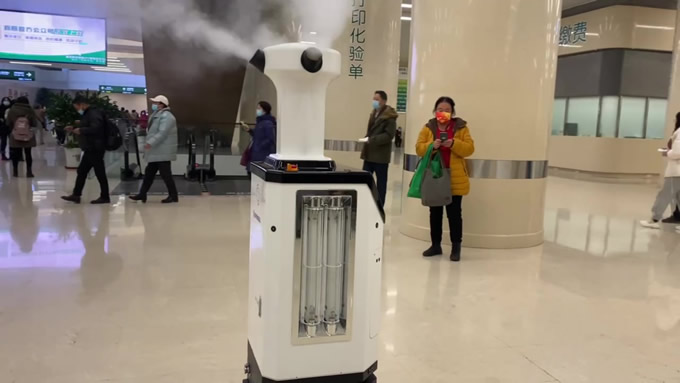 消毒機器人什么場合作用大,大型公共場所使用消毒機器人進行消毒