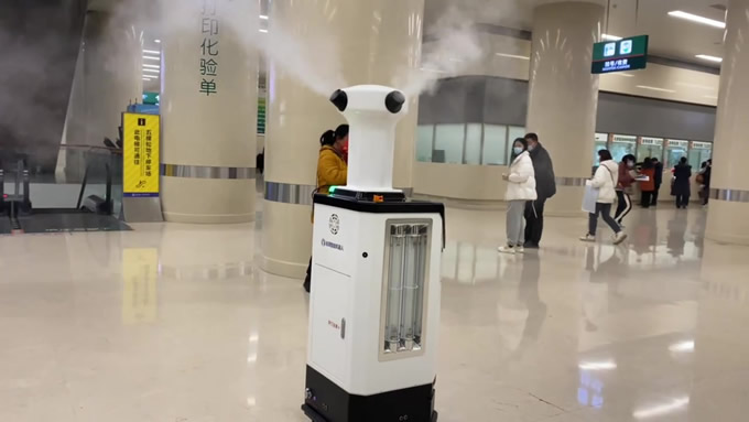 消毒機器人什么場合作用大,大型公共場所使用消毒機器人進行消毒