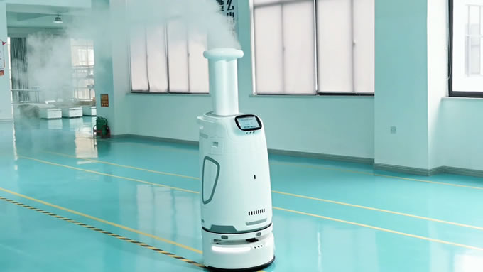 消毒機(jī)器人使用霧化噴霧、紫外線燈雙重途徑消毒滅菌,是保證隔離點(diǎn)各個(gè)死角、空氣安全性的強(qiáng)力護(hù)衛(wèi)。微米J霧化裝置搭配環(huán)繞式紫外燈,可以實(shí)現(xiàn)360度無(wú)死角自主消殺。