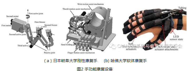 腦卒中、意外事故和老齡化等造成的腦損傷患者數量大幅度增加,由腦損傷引起的手運動功能障礙直接影響患者的生活質量。傳統的治療手段主要依靠康復醫師輔助患者關節活動度和肌力訓練,但其訓練效果受醫生經驗和業務水平及訓練時間等因素的影響。因此有很多研究者研發了相關的康復訓練設備輔助患者訓練以重新獲取肢體的運動技能[1]。
