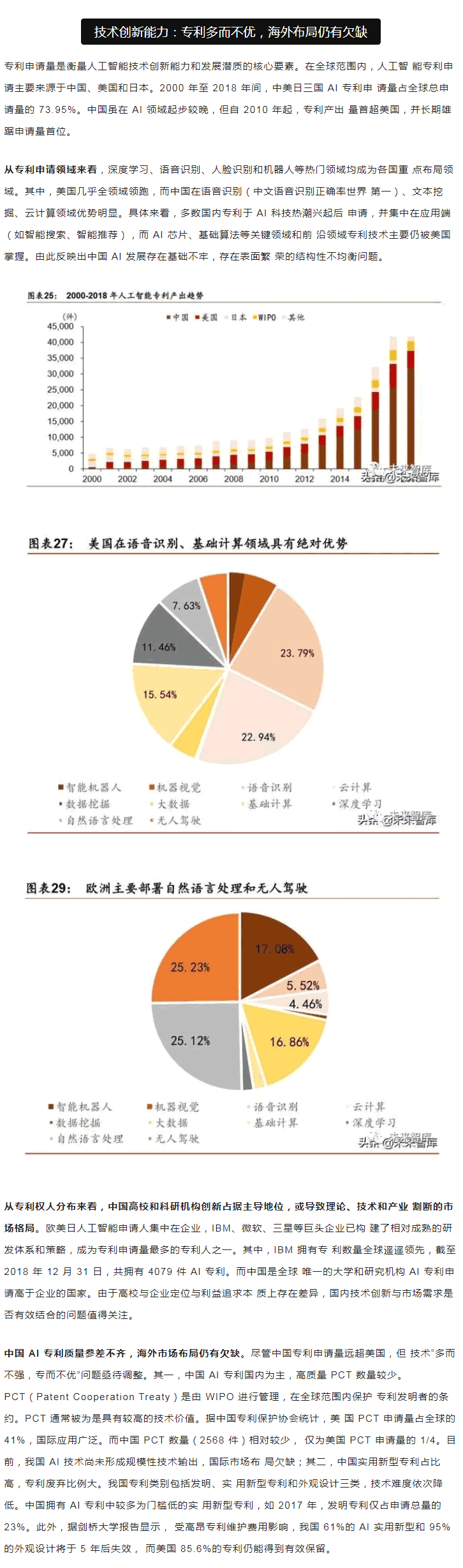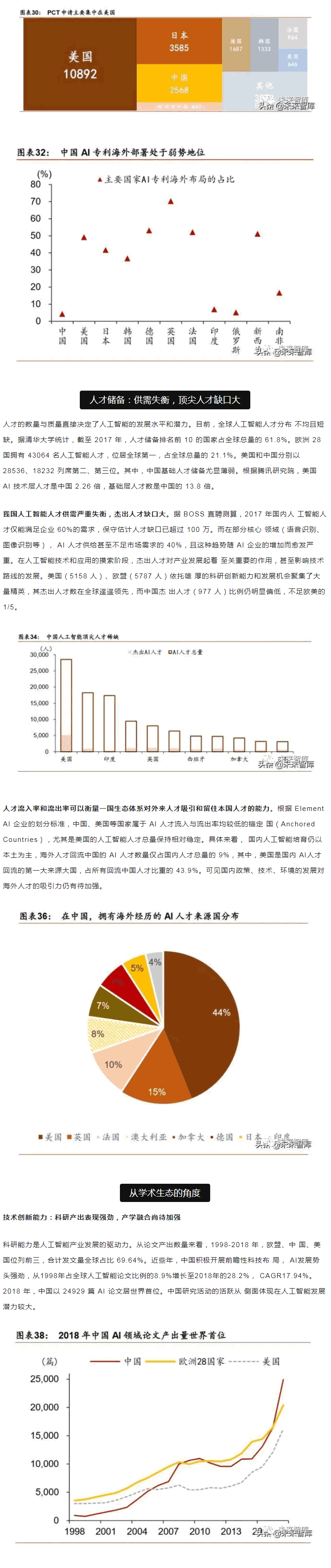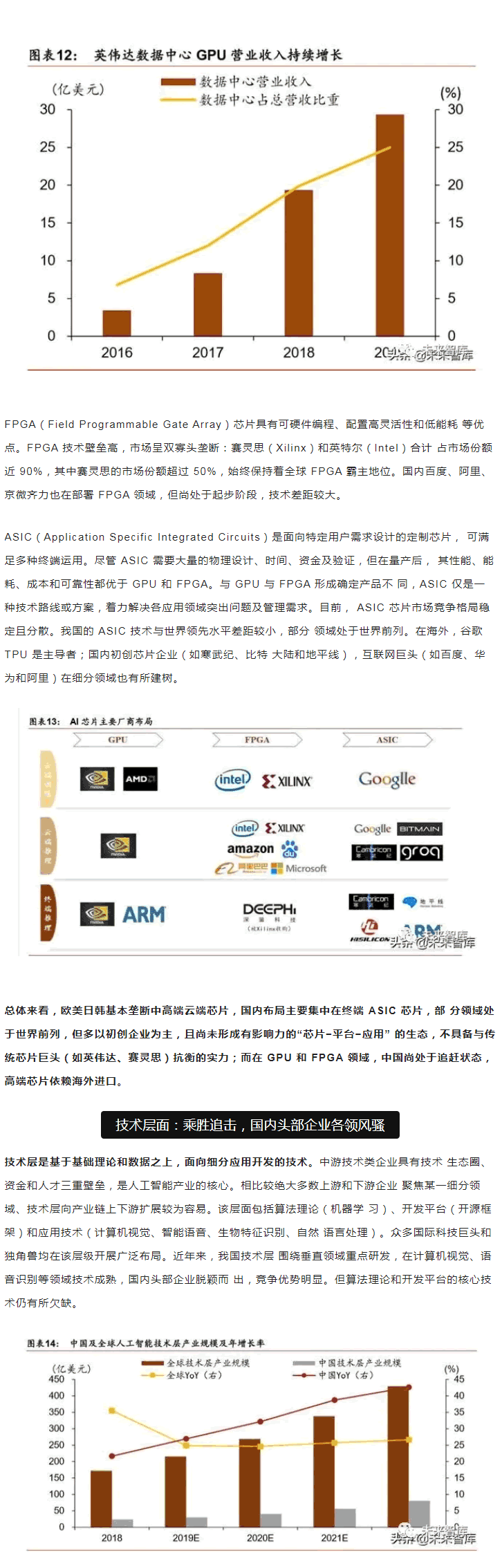 范圍內(nèi),中美“雙雄并立”構(gòu)成人工智能D一梯隊,日本、英國、以色列和法國等發(fā) 達(dá)國家乘勝追擊,構(gòu)成D二梯隊。同時,在D層設(shè)計上,多數(shù)國家強(qiáng)化人工智能戰(zhàn)略布局, 并將人工智能上升至國家戰(zhàn)略,從政策、資本、需求三大方面為人工智能落地保駕護(hù)。后起之秀的中國,局部L域有所突破。中國人工智能起步較晚,發(fā)展之路幾經(jīng)沉浮。自 2015 年以來,政府密集出臺系列扶植政策,人工智能發(fā)展勢頭迅猛。由于初期我國政策 側(cè)重互聯(lián)網(wǎng)L域,資金投向偏向終端市場。因此,相比美國產(chǎn)業(yè)布局,中國技術(shù)層(計算 機(jī)視覺和語音識別)和應(yīng)用層走在世界前端,但基礎(chǔ)層核心L域(算法和硬件算力)比較 薄弱,呈“頭重腳輕”的態(tài)勢。當(dāng)前我國人工智能在國家戰(zhàn)略層面上強(qiáng)調(diào)系統(tǒng)、綜合布局。