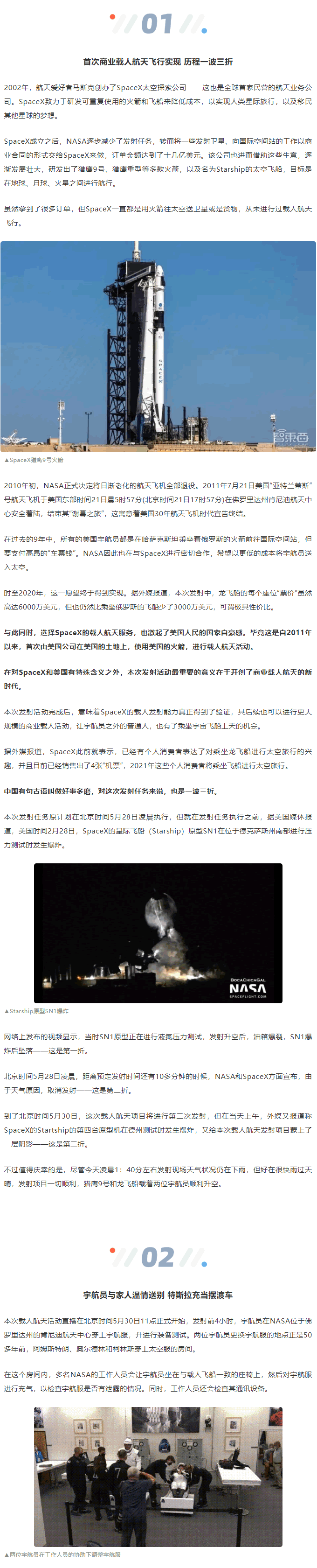 對(duì)全人類(lèi)來(lái)說(shuō),這是D一次由民營(yíng)航天公司將宇航員送上太空的項(xiàng)目,證明了載人航天——這項(xiàng)此前只有力量才能實(shí)現(xiàn)的工作,也可以被民營(yíng)企業(yè)實(shí)現(xiàn),并進(jìn)行商業(yè)化運(yùn)作,未來(lái)私人太空旅行將成為可能。