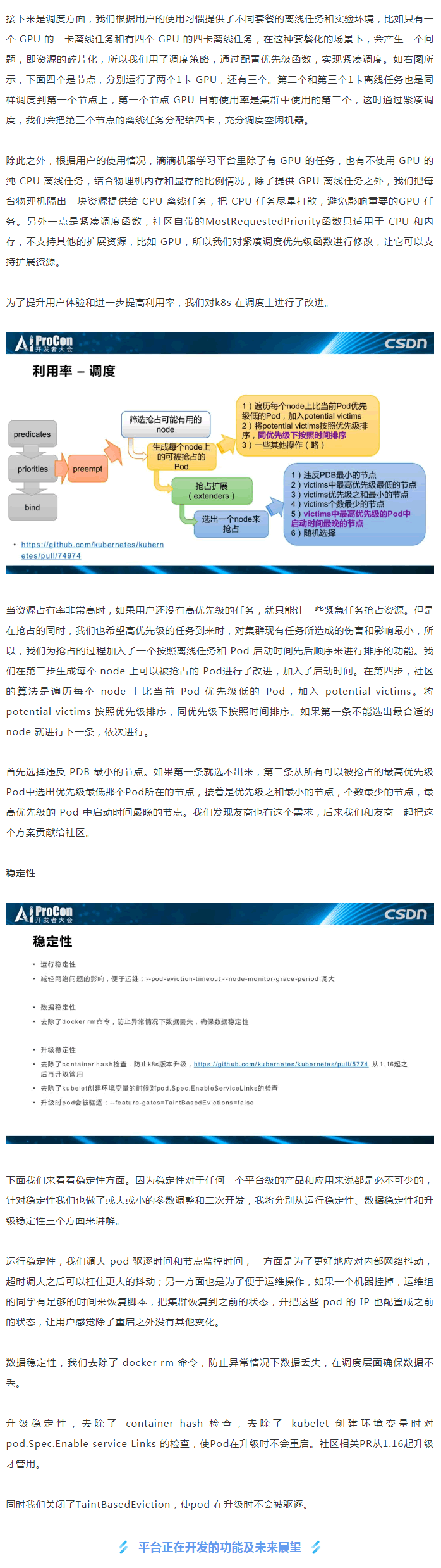 滴滴出行資深軟件工程師唐博在機器學習技術分論壇上分享了kubernetes調度系統在滴滴機器學習平臺中的落地與二次開發。本次演講從滴滴機器學習平臺的特點開始探討,分享了滴滴機器學習場景下的 k8s 落地實踐與二次開發的技術實踐與經驗,包括平臺穩定性、易用性、利用率、平臺 k8s 版本升級與二次開發等內容。此外,唐博還介紹了滴滴機器學習平臺是如何從 YARN 遷移到 k8s,以及 YARN 的二次開發與 k8s 的對比等。后,唐博還分享了滴滴機器學習平臺正在研發中的功能以及對未來的展望。本文為演講實錄。