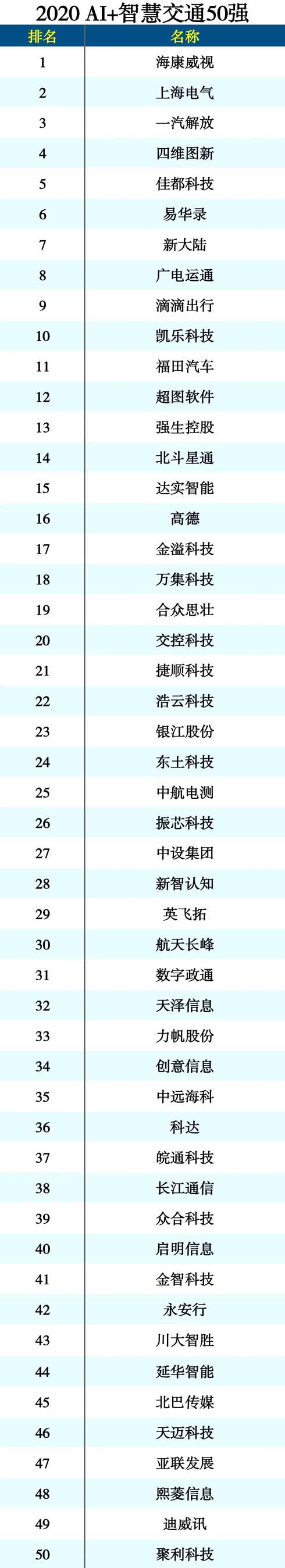 當前位置:首頁 > 新聞資訊 > ai智能 > 2020 AI+智慧交通50強