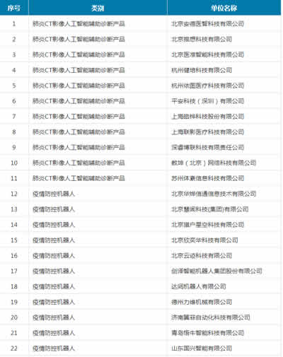 在人工智能創新應用先導區和有關專業機構支持下,我們對在科技支撐抗擊新G肺炎疫情中表現突出的人工智能企業進行了追蹤,現將表現突出的企業名單予以公布,以示肯定和鼓勵。