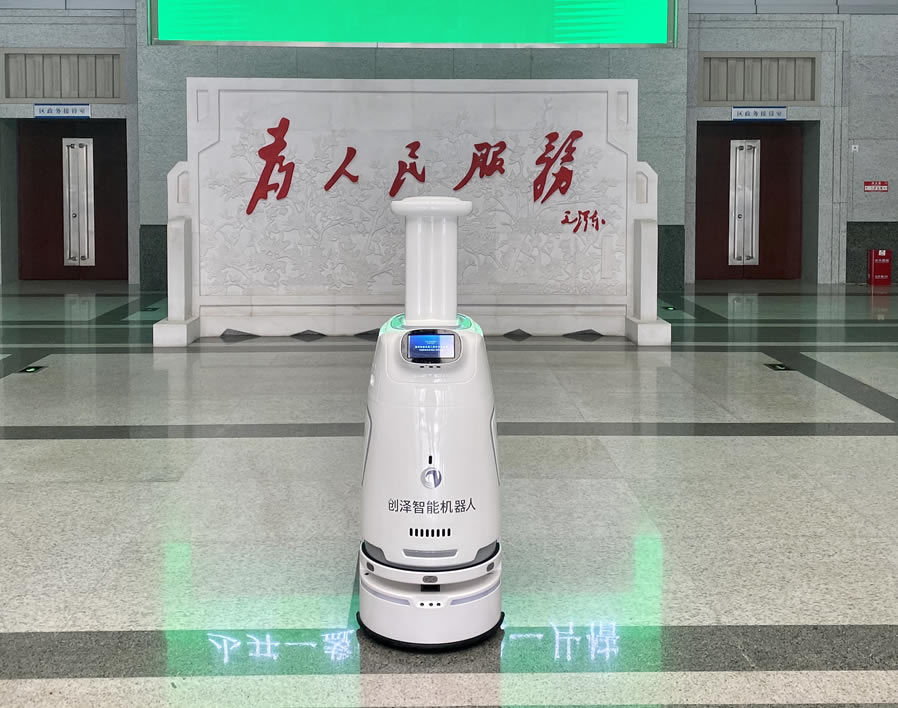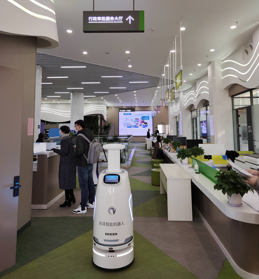 為進(jìn)一步提升政務(wù)服務(wù)能力和水平,營造方便企業(yè)群眾辦事的溫馨環(huán)境,近日,政務(wù)服務(wù)大廳迎來創(chuàng)澤智能消毒機(jī)器人,為人民群眾提供一個安全保障的辦事環(huán)境。