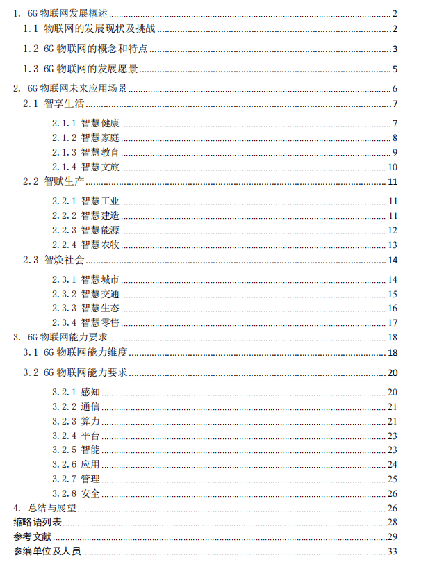 《白皮書》系統化的梳理了6G物聯網在智享生活、智賦生產和智煥社會三大L域的未來應用場景,并提出在感知、通信、計算、平臺、智能、應用、管理和安全等方面的能力需求。