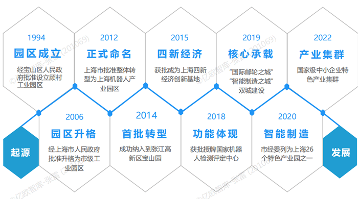 上海機器人產業園位于寶山區顧村鎮,前身為寶山區顧村工業園區,成立于1994年,總占地3.09KM2。2012年經上海市經信委批準掛牌上海機 器人產業園,是上海首家以機器人命名的園區,也是距離上海市中心的104工業園區,2020年成為上海首批26個特色產業園之一,2022年 成為國家工信部中小企業特色產業集群之一。