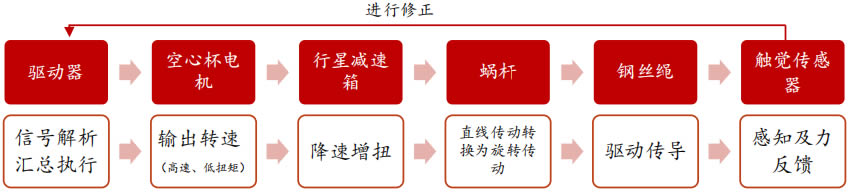 旋轉(zhuǎn)執(zhí)行器分布于肩部、手部等多自由度關(guān)節(jié),作用是將某物旋轉(zhuǎn)到一定角度完成旋轉(zhuǎn)運(yùn)動(dòng);驅(qū)動(dòng)關(guān)節(jié)完成旋轉(zhuǎn)動(dòng)作,減速器為核心部件
