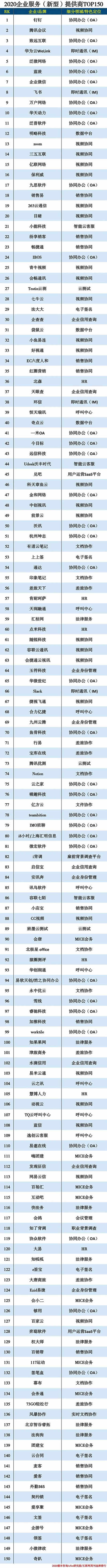 2020企業服務(新型)提供商TOP150