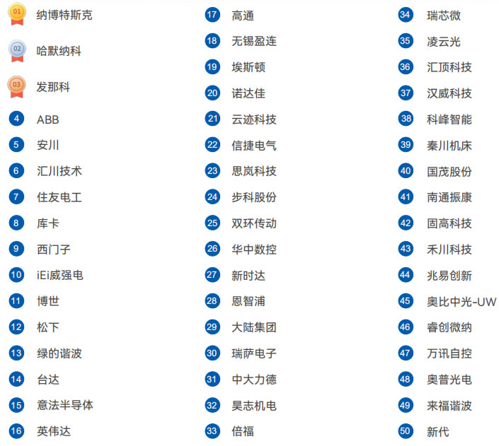 匯川技術,珞石機器人,越疆科技,節卡,埃斯頓,遨博智能,埃夫特,海康機器人,新時達,大族機器人,阿童木機器人,新松機器人,極智嘉/Geek+