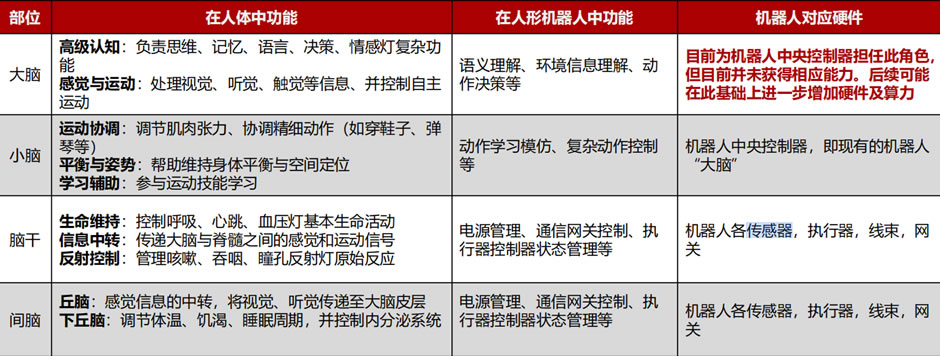 人腦與機器人大腦對應關系:大小腦對中央控制器,腦干對傳感器