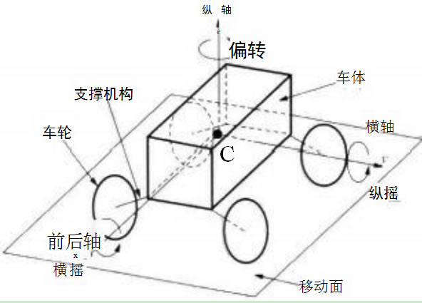 (3)車輪支撐機構:車輪支撐機構位于車輪與車體之間,決定兩者在空間上的 關系,包括自由度在內。車輪支撐機構承載車輪以上部分的載荷,并將它分解到各 個車輪上,懸掛裝置、緩沖裝置也應該包含在車輪支撐機構之內。
