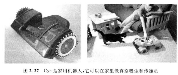 令人驚奇的是,靜態(tài)穩(wěn)定所要求的Z小輪子數(shù)目是2個。如上所述,如果質(zhì)心在輪軸下面, 一個兩輪差動驅動的機器人可以實現(xiàn)靜態(tài)穩(wěn)定。 Cye 就是使用這種輪子 結構的商業(yè)移動機器人(圖2.27)。