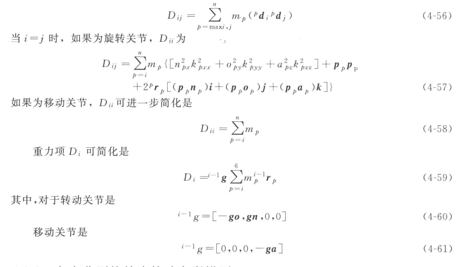 拉格朗日動力學方程給出了機器人動力學的顯式狀態方程,可用來分析和設計高J的關節變量空間的控制策略。它既可用于解決動力學正問題,即給定力和力矩,用動力學方程求解關節的加速度,再積分求得速度及廣義坐標;也可用于解決動力學逆問題,即給定廣義坐 標和它們的前兩階時間導數,求廣義力和力矩。在兩種情況下,可能都需要計算 D;; 、Cijk 和D; 。 因計算這些系數需要大量的算術運算,所以上述方程需要簡化處理,否則很難用于 實時控制。