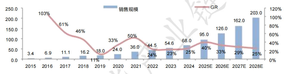 穩(wěn)步期(2022-2024 年)這一階段,經(jīng)濟形勢更加復(fù)雜,地域沖突、供應(yīng)鏈吃緊、美元加息等都對下游投資產(chǎn)生了較大的影響。在終端縮減自動化投資的背景下,協(xié)作機器人憑借靈活部署、提效降本的優(yōu)勢, 解決了許多制造業(yè)企業(yè)的柔性自動化改造難題,市場增速雖有放緩,但仍保持良好增長。協(xié)作機器人展現(xiàn)出了其發(fā)展的強勁韌性與潛力。