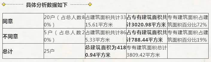 2016年1月10日,湛江市霞山區(qū)某小區(qū)就召開了業(yè)主大會,并作出決議,確認(rèn)該小區(qū)業(yè)主共有66戶,其中同意加裝小區(qū)電梯的業(yè)主數(shù)為52戶(東門總共25戶,其中20戶同意加裝;中門總共17戶,其中9戶同意加裝;西門總共24戶,其中23戶同意加裝),該小區(qū)業(yè)主大會會議決定:在該小區(qū)東門、西門各加裝一臺電梯。2016年11月18日,根據(jù)該小區(qū)的申請,湛江規(guī)劃局依法頒布了在該小區(qū)東門、西門各加裝一臺電梯的《建設(shè)工程規(guī)劃許可證》。小區(qū)西門的電梯安裝較為順利,但東門不同意安裝的5位業(yè)主對在東門安裝電梯的工程實施中百般阻撓,將車輛停放在施工現(xiàn)場以阻礙施工。經(jīng)派出所、社區(qū)法律顧問等多方調(diào)解無效后,2017年9月11日,東門同意安裝的李康林等20人將不同意安裝的戴戈等5人訴上法庭,要求被告移走障礙物,不得阻止電梯安裝。 經(jīng)法院查明,涉及本案的業(yè)主共有25戶,分為三種戶型,E號戶型的建筑面積為182.78平方米、專有建筑面積為166.54平方米,F(xiàn)號戶型的建筑面積為144.48平方米、專有建筑面積為131.64平方米,G號戶型的建筑面積為172.51平方米、專有建筑面積為157.18平方米。同意加裝電梯的戶主有20戶,其中E號戶型有6戶,F(xiàn)號戶型有7戶,G號戶型有7戶,占建筑面積共計3315.61平方米,占專有建筑面積共計3020.98平方米。不同意加裝電梯的戶主有5戶,其中E號戶型有3戶,F(xiàn)號戶型有1戶,G號戶型有1戶,占建筑面積共計865.33平方米,占專有建筑面積共計788.44平方米。涉案樓房東門業(yè)主的總建筑面積為4180.94平方米。