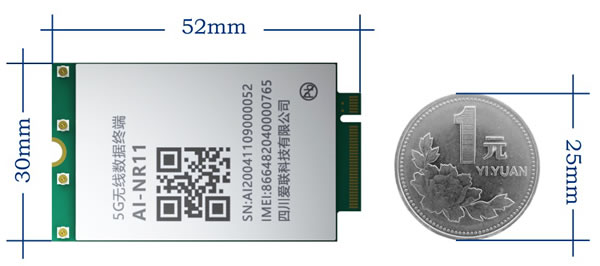 AI-NR11 5G模組采用標(biāo)準(zhǔn)M.2封裝設(shè)計(jì),寬度僅比1元硬幣寬5mm,真正做到了和4G模組同尺寸。采用四天線替代八天線,通過天線輪詢SRS功能,智能快速選出優(yōu)天線方案,有效提升上網(wǎng)速率體驗(yàn)。從一款5G工業(yè)互聯(lián)網(wǎng)模組下線到該模組的成功研發(fā),時(shí)間跨度不到5個(gè)月。