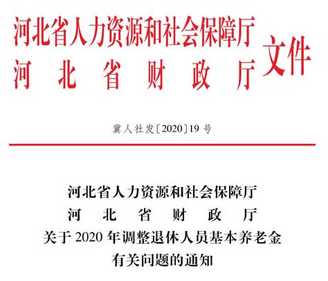 河北省財政廳關于2020年調整退休人員基本養老金有關問題的通知