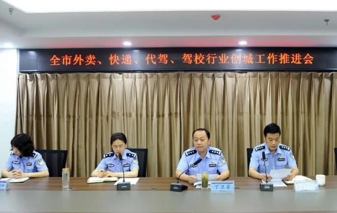 7月21日下午,市公安局交警支隊召開全市外賣、快遞、代駕、駕校行業創城工作推進會,通報全市外賣車輛交通違法現狀和外賣、快遞、代駕行業交通安全管理工作推進意見。市公安局交警支隊副支隊長丁衛東,市公安局車管所,交警支隊交通管理科、宣傳教育科,市區交警各大隊分管負責同志,外賣、快遞、代駕、駕校各行業單位代表,以及部分媒體記者參加會議。