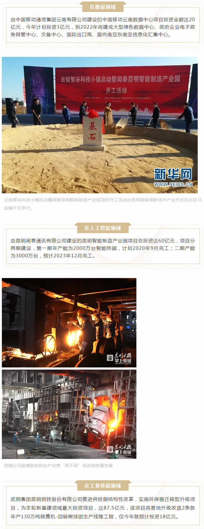 《通知》明確了今年年度投資計劃,即昆明市2020年新型基礎設施建設投資項目62個,總投資1953.45億元,2020年計劃投資302.26億元,其中,續建項目30個,總投資1002.43億元,2020年計劃投資204.01億元;新開工項目32個,總投資951.02億元,2020年計劃投資98.25億元。