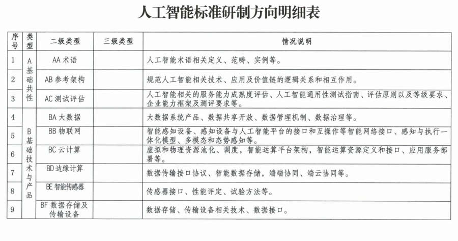 當前位置:首頁 > 新聞資訊 > 人工智能標準 > 人工智能標準研制方向明細表