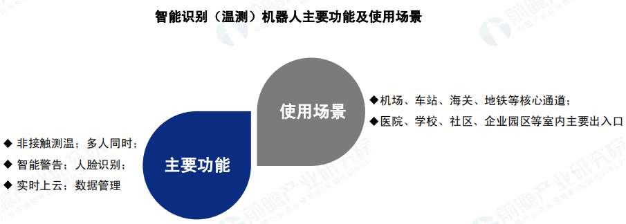 防疫機器人在巡檢L域主要企業有優必選、G新興、L信股份、翼眸科技等企業,其防疫機器人產品主要應用于疫情 防護中的無接觸體溫檢測、人臉口罩識別等工作。