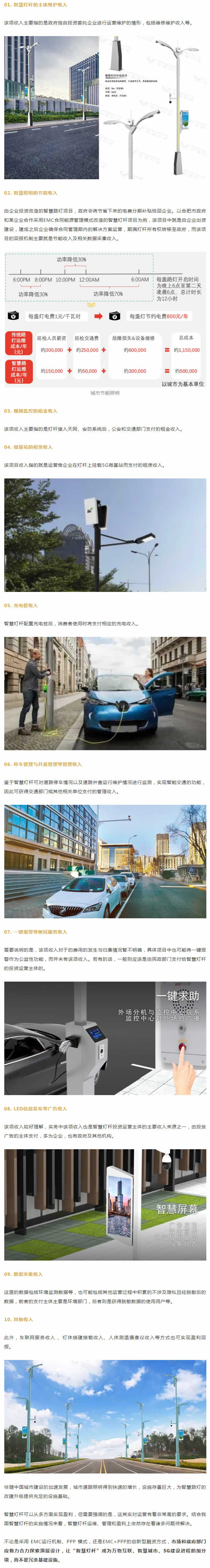 那么投資主體是怎么收回其G額的投資的呢?首先,要取決于產品本身的功能。從總體和長期范圍內看,智慧燈桿將產生多項運營收入,如補貼、安裝、運維、搭載、廣告、能源、基站、數據等都將帶來收入。