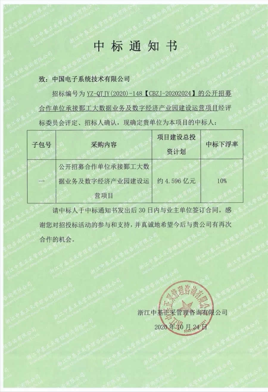 中國系統中標4.596億鄞工大數據業務及數字經濟產業園建設運營項目