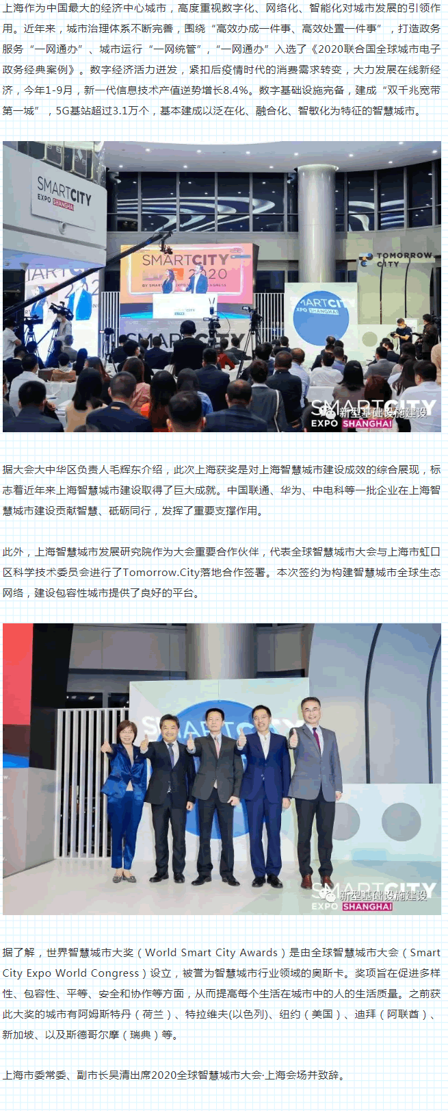 這是中國城市首次獲得該獎項,代表上海的智慧城市建設成效卓著,得到來自的廣泛關注和G度認可。