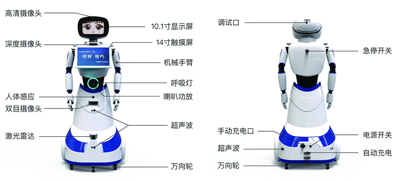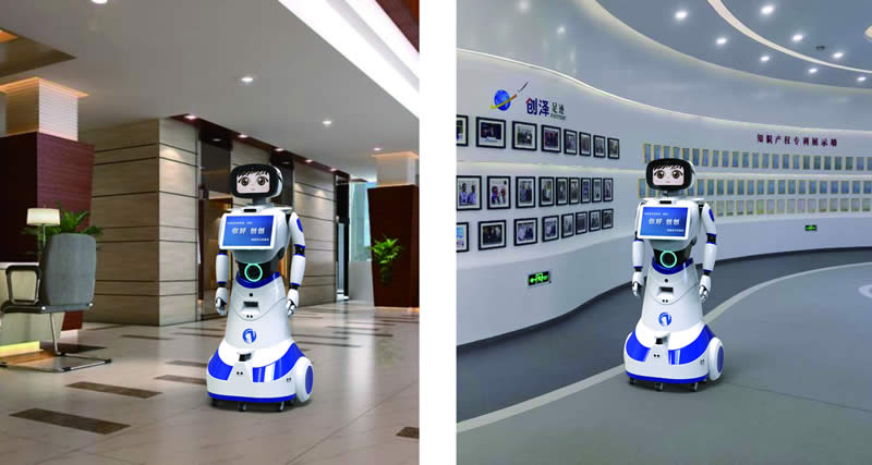 迎賓服務(wù)機(jī)器人“創(chuàng)創(chuàng)”集成人臉識(shí)別,多種傳感器感知外部環(huán)境信息,實(shí)現(xiàn)人類與機(jī)器人的無障礙交流