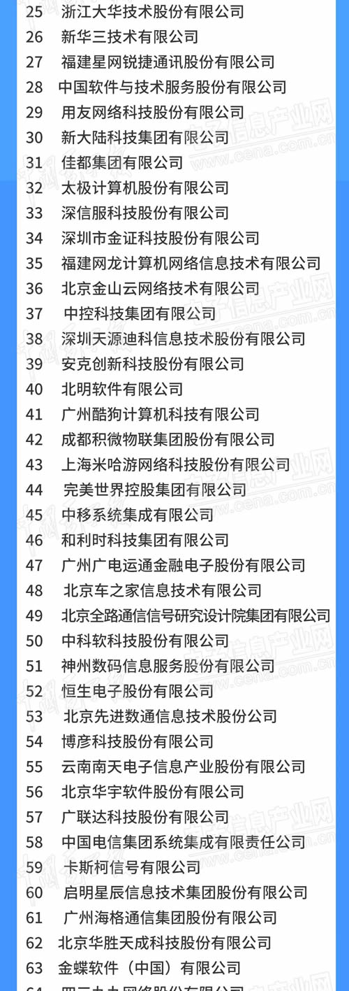 華為 海康威視 小米 中興通訊 大華股份 阿里云 科大訊飛 神州泰岳 京東方 亨通光電 佳都科技 寶信軟件 菜鳥網絡 東軟集團 美的 大唐電信