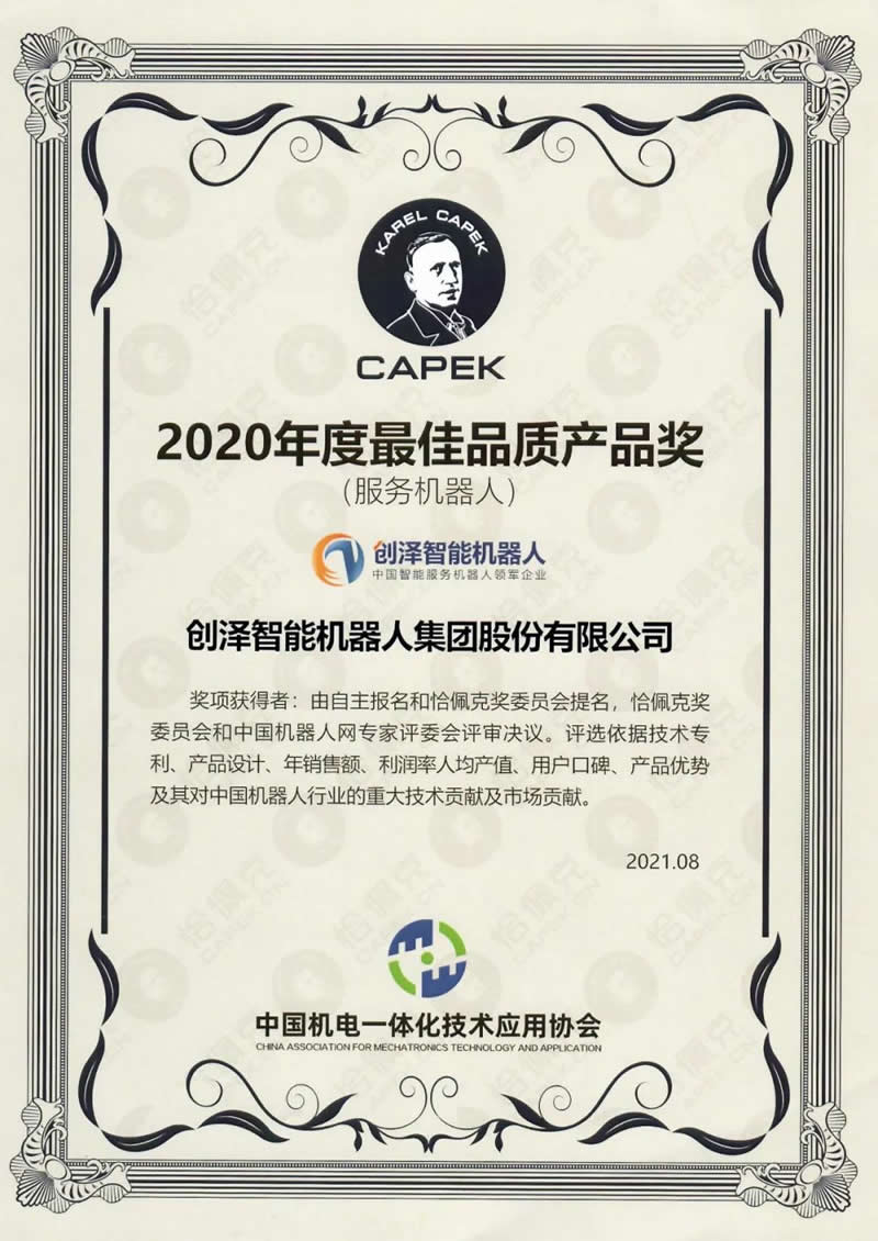 此次創澤集團憑借在人工智能和機器人L域的突出表現,成功從恰佩克獎主辦方和評委會層層篩選中脫穎而出,榮獲恰佩克“2020年度佳品質產品獎”。這不僅意味著創澤集團的產品與技術受到恰佩克評委會的肯定,同樣證明創澤集團被行業內部的認可與肯定。