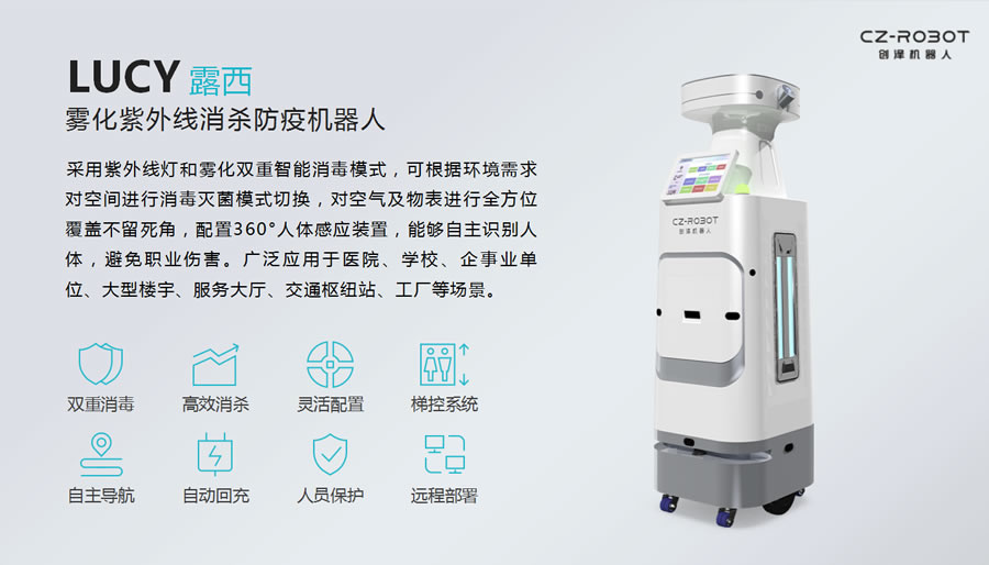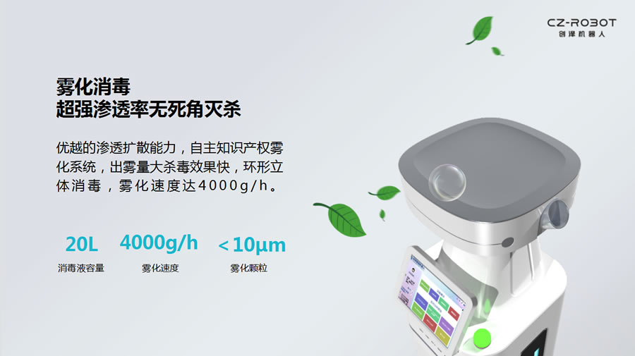 創澤集團承擔了AI抗疫全場景示范工程消毒殺菌板塊的研發,實施工作,霧化紫外線消毒殺菌機器人在醫院多場景成功應用