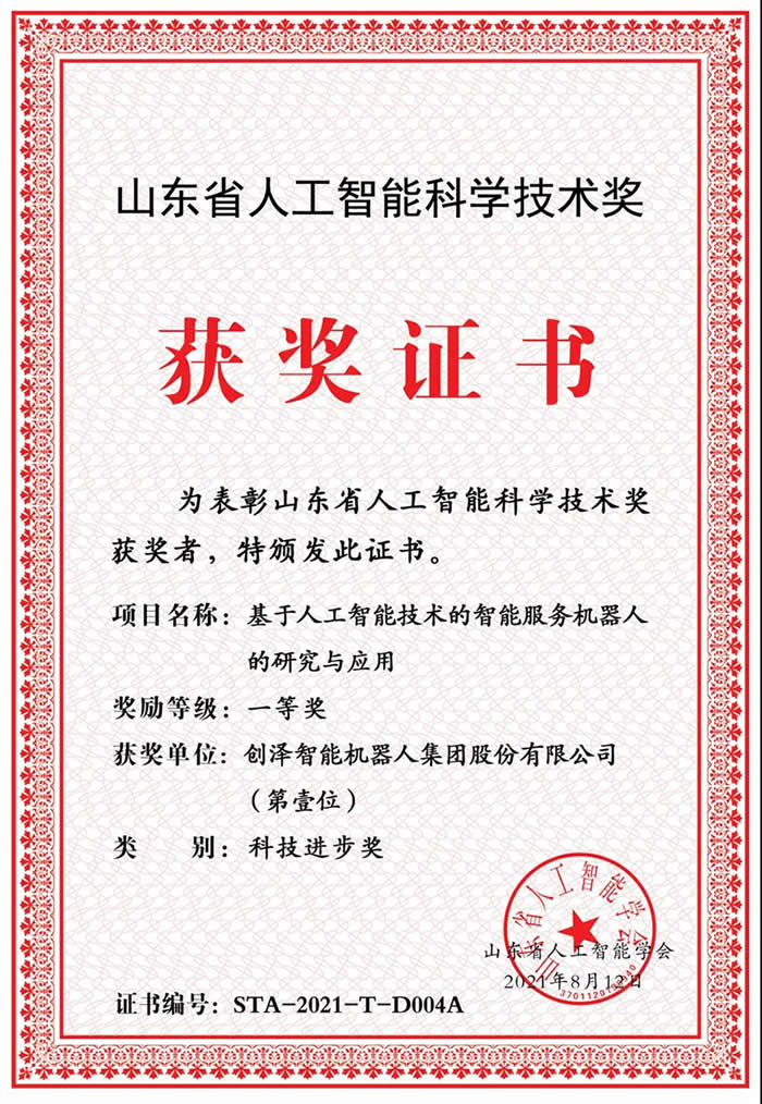 喜報|創(chuàng)澤集團(tuán)榮獲2021山東省人工智能協(xié)會科學(xué)技術(shù)獎一等獎 |