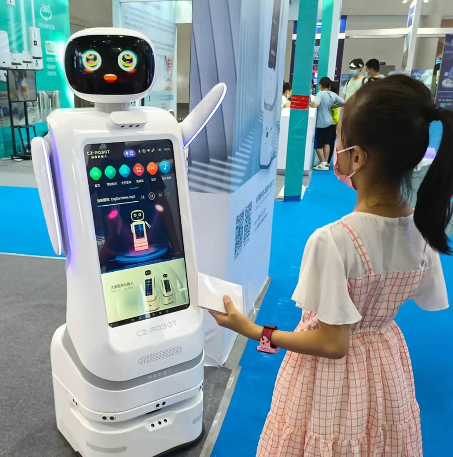 展會現場,創澤集團的智能消毒機器人、商用服務機器人擔任了大會“志愿者”工作,信息查詢、迎賓接待、宣傳講解、安全消毒等多項任務,都出色的完成了并吸引了大量觀眾駐足交流,現場吸睛無數。