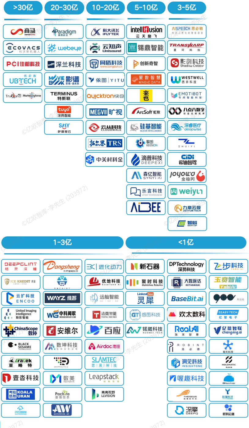安維爾 八點八數字 創新奇智 格靈深瞳 雙太數科 進化動力 科大訊飛 曠視科技 樂言科技 商湯科技 深蘭科技 特斯聯 涂鴉智能 云天勵飛 云從科技