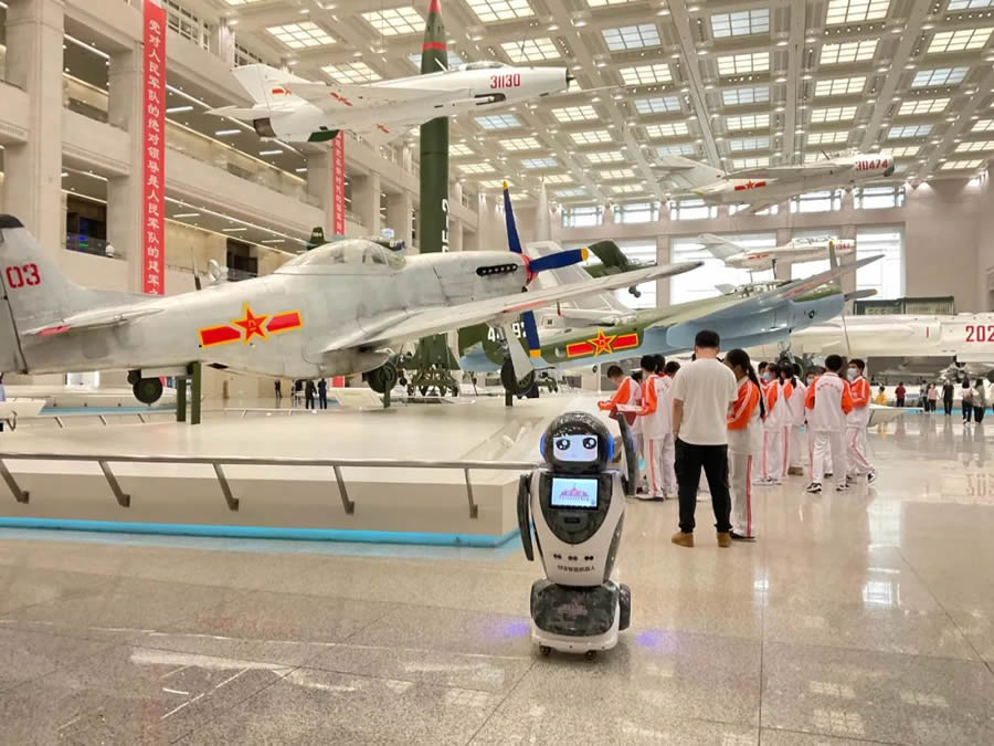 創(chuàng)澤博物館服務(wù)機(jī)器人“創(chuàng)創(chuàng)”亮相中國人民革命軍事博物館,每天為觀眾提供軍事科普講解、信息查詢等服務(wù)。除了常規(guī)的語音介紹,機(jī)器人還能隨機(jī)播放館藏戰(zhàn)機(jī)重要?dú)v史時(shí)刻的音視頻畫面,呈現(xiàn)出集聲音畫面于一體全景式講解。