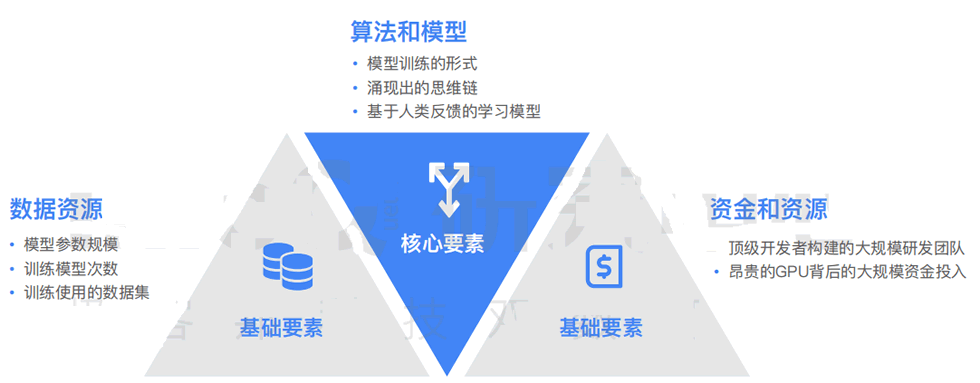 雖然數據、資金資源為大語言模型研發設置了G門檻,但對于實力雄厚的大型企業仍然是挑戰較小的。算法和模型是目前區分大語言模型研發能力的核心 要素。算法和模型影響的的模型豐富度、模型準確性、能力涌現等都成為評價大語言模型優劣的核心指標。