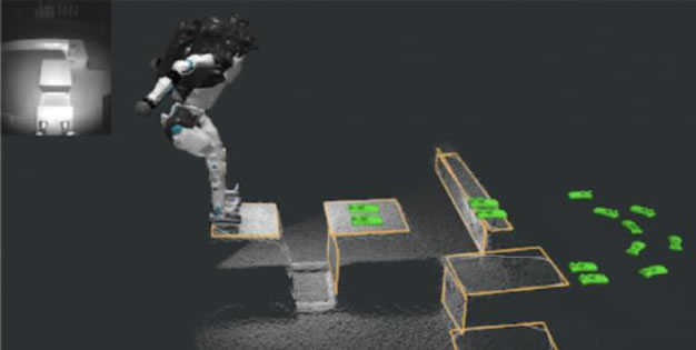 波士頓動力的 Atlas 頭部有兩個攝像頭,一個是彩色相機,另一個則是 TOF 深度相機。Atlas 使用 TOF 深度相機以每秒 15 幀的速度生成環境的點云,點云 是測距的大規模集合。Atlas 的感知軟件使用一種名為多平面分割的算法從點云中提取平面。多平面分割算法的輸入饋入到一個映射系統中,該系統為 Atlas 通 過相機看到的各種不同對象構建模型,Atlas 再基于它構建的模型來規劃路徑。