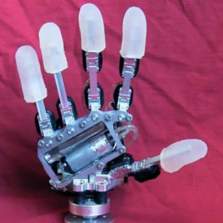 這種氣壓驅動的仿生靈巧手存在兩方面不足:(1)由于氣壓的控制相對較難導致靈巧手運 動過程中會出現不平穩的情況;(2)氣壓驅動的相關驅動元件體積較大,不便于實現機械 和驅動單元的集成化設計。